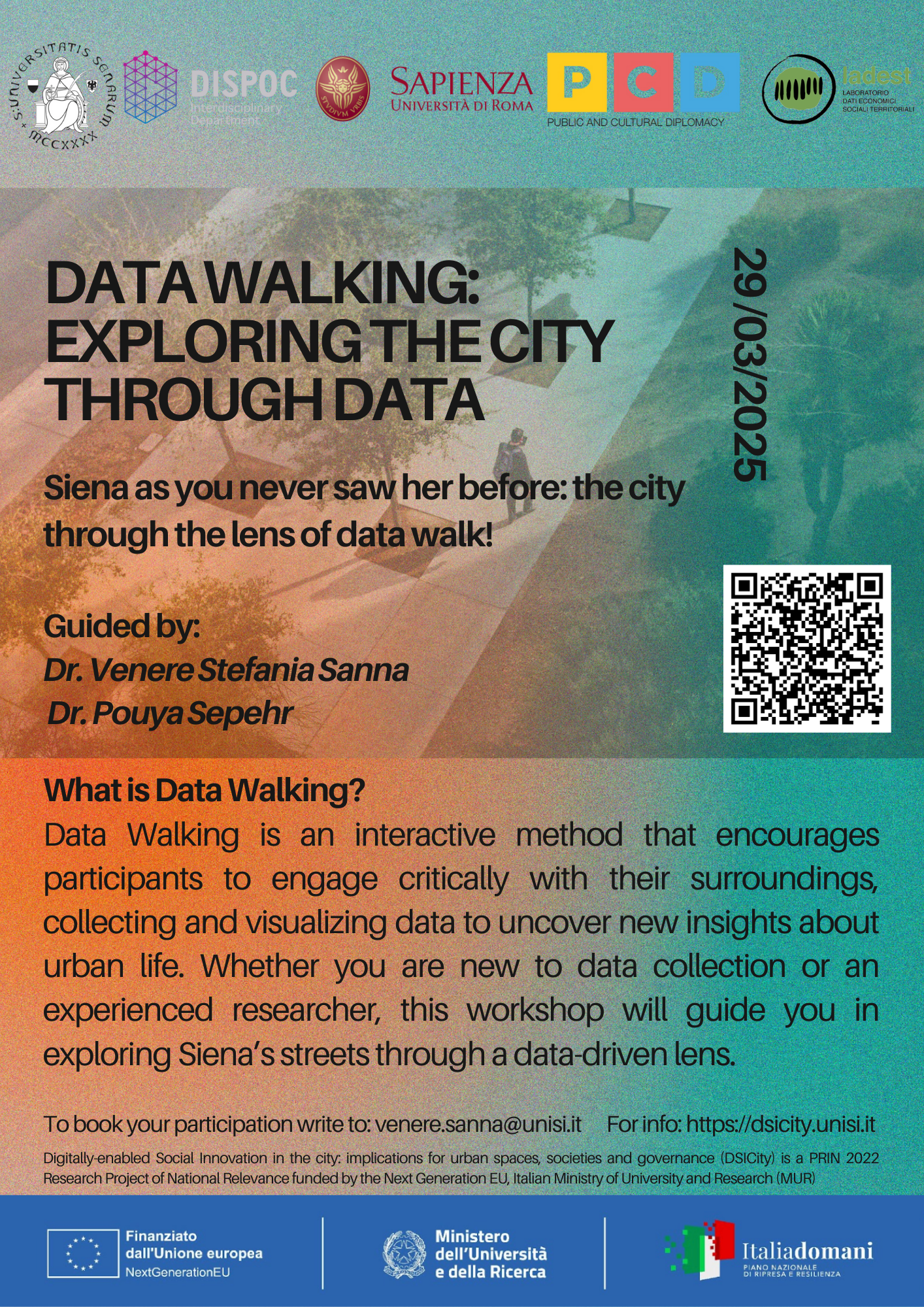 Data Walking is an interactive method that encourages participants to engage critically with their surroundings, collecting and visualizing data to uncover new insights about urban life. Whether you are new to data collection or an experienced researcher, this workshop will guide you in exploring Siena’s streets through a data-driven lens.