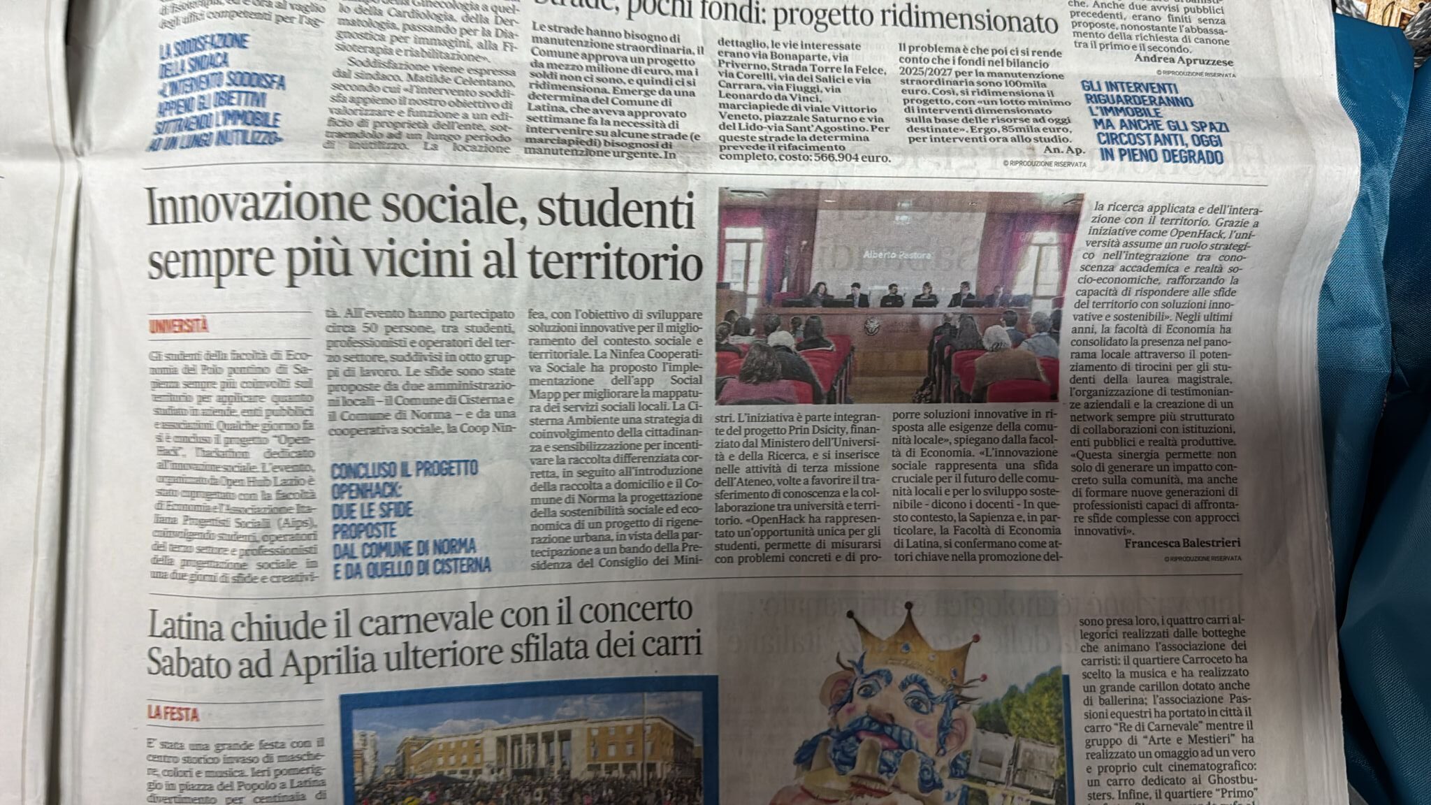 We are excited to share that Latina Today has published an article covering OpenHack, a major hackathon in which we had the opportunity to participate as part of the PRIN project!
