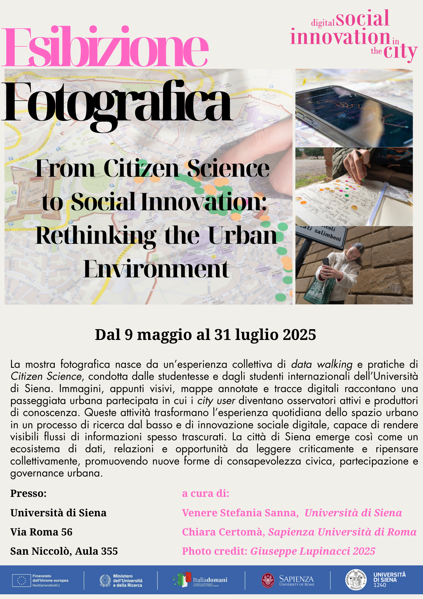 The photographic exhibition stems from a collective experience of data walking and Citizen Science practices, conducted by international students at the University of Siena.