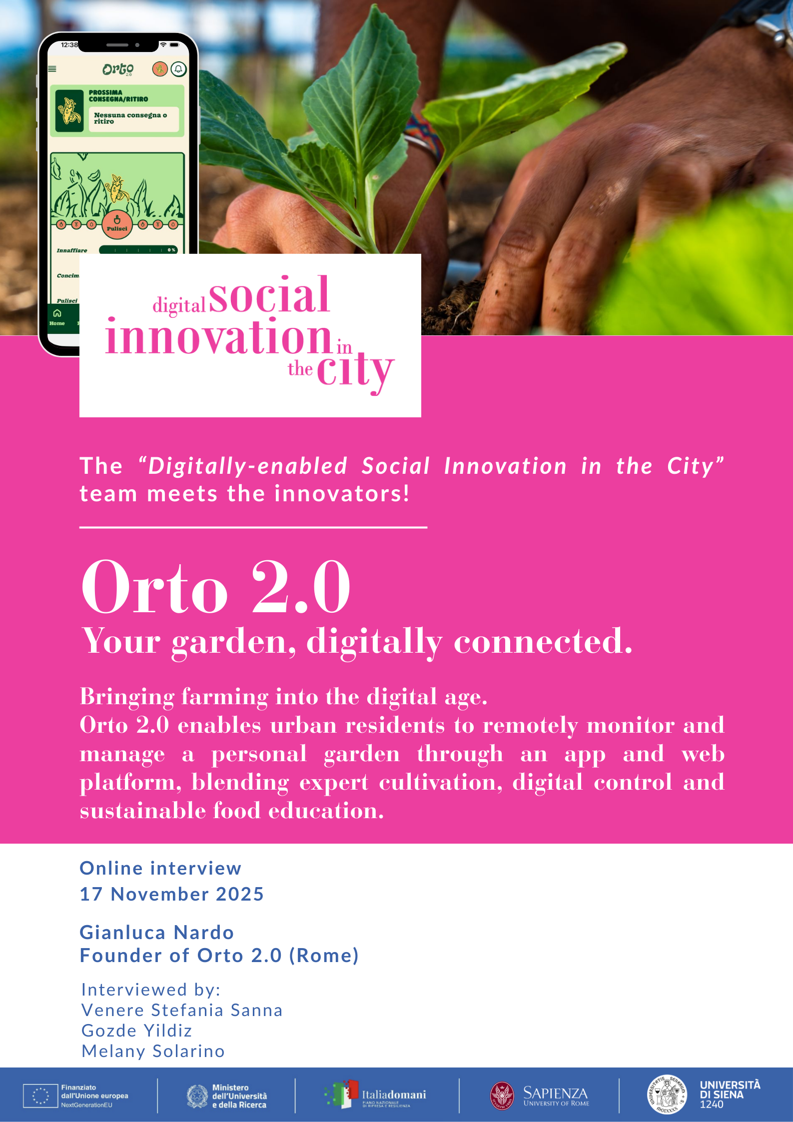 The project team will meet with Gianluca Nardo, founder and leader of “Orto 2.0” to better understand how the initiative came about, what its objectives are, what its characteristics are and what its future prospects are. We are excited to learn more about how this group of young innovators – who want to change traditional market logic by redesigning the supply chain and merging the roles of producer and consumer – contributes to the growing world of digital innovation in Rome and Italy!