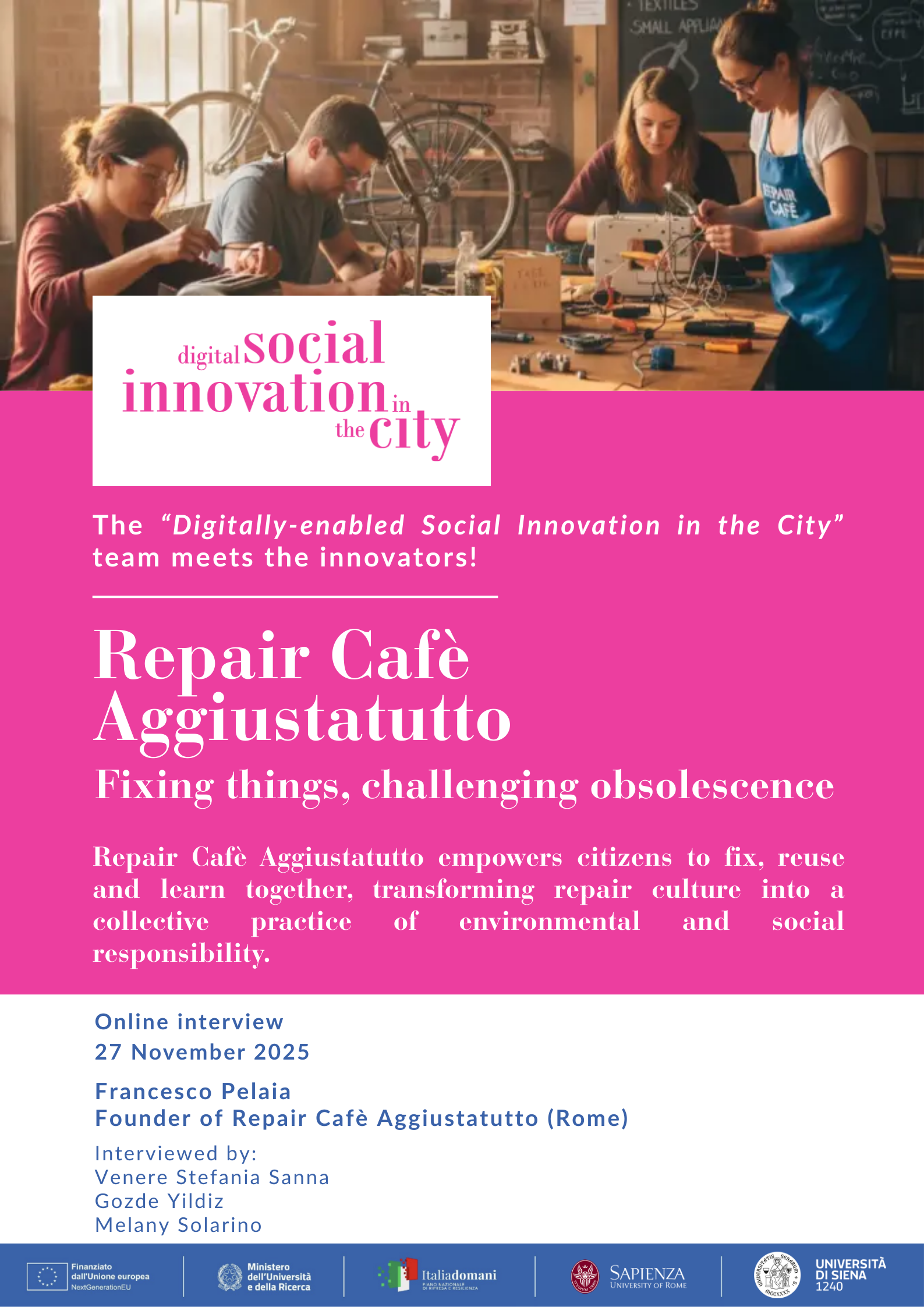 The project team will meet with Francesco Pelaia, founder of “Repair Cafè Aggiustatutto” a social innovation initiative thanks to which a huge amount of objects of all kinds have been repaired instead of ending up in landfill!